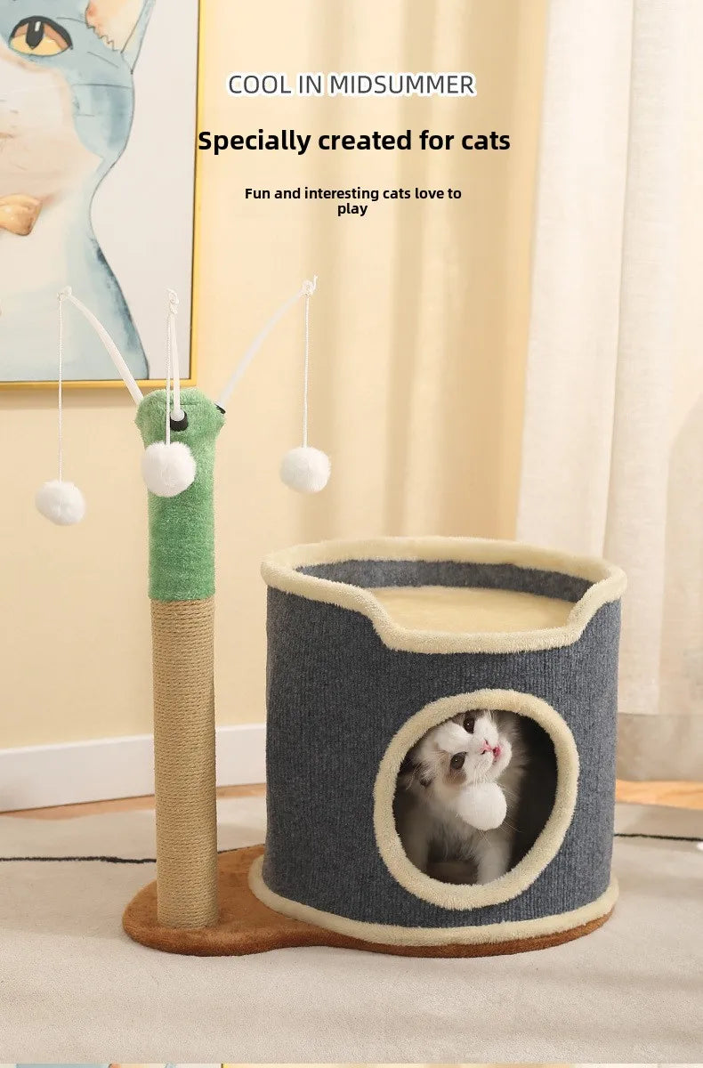 3-tiers Cat Bed Pet House Covered Cave with soft mat Large Hideaway Cat Tent with Fluffy Ball Hanging Accessories