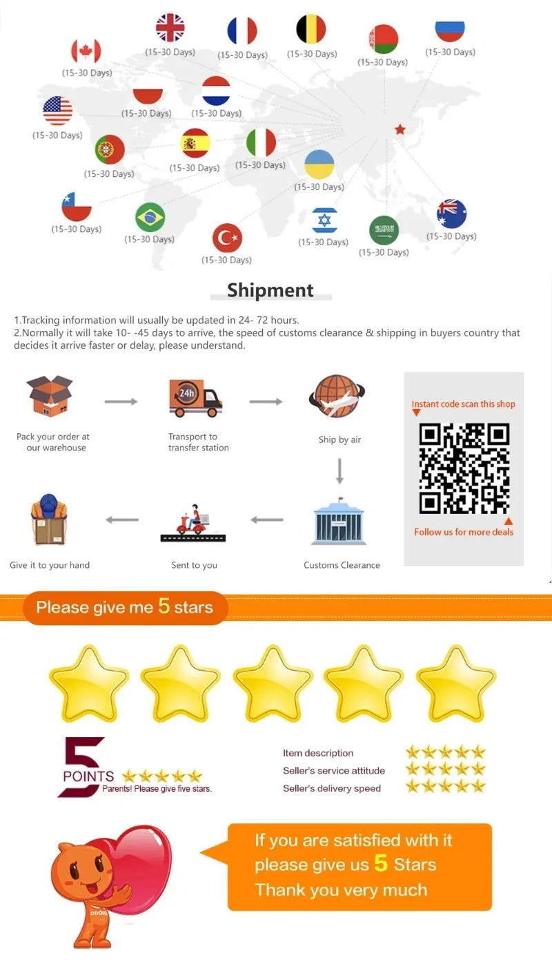 2. After ordering, we will send the order as soon as possible, usually we'll sent out your parcel within 2-4 working days.