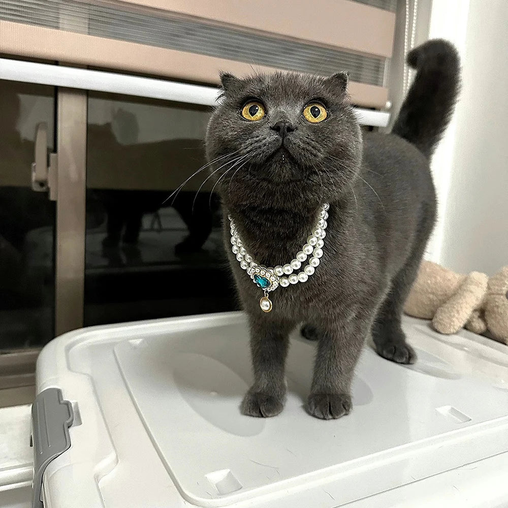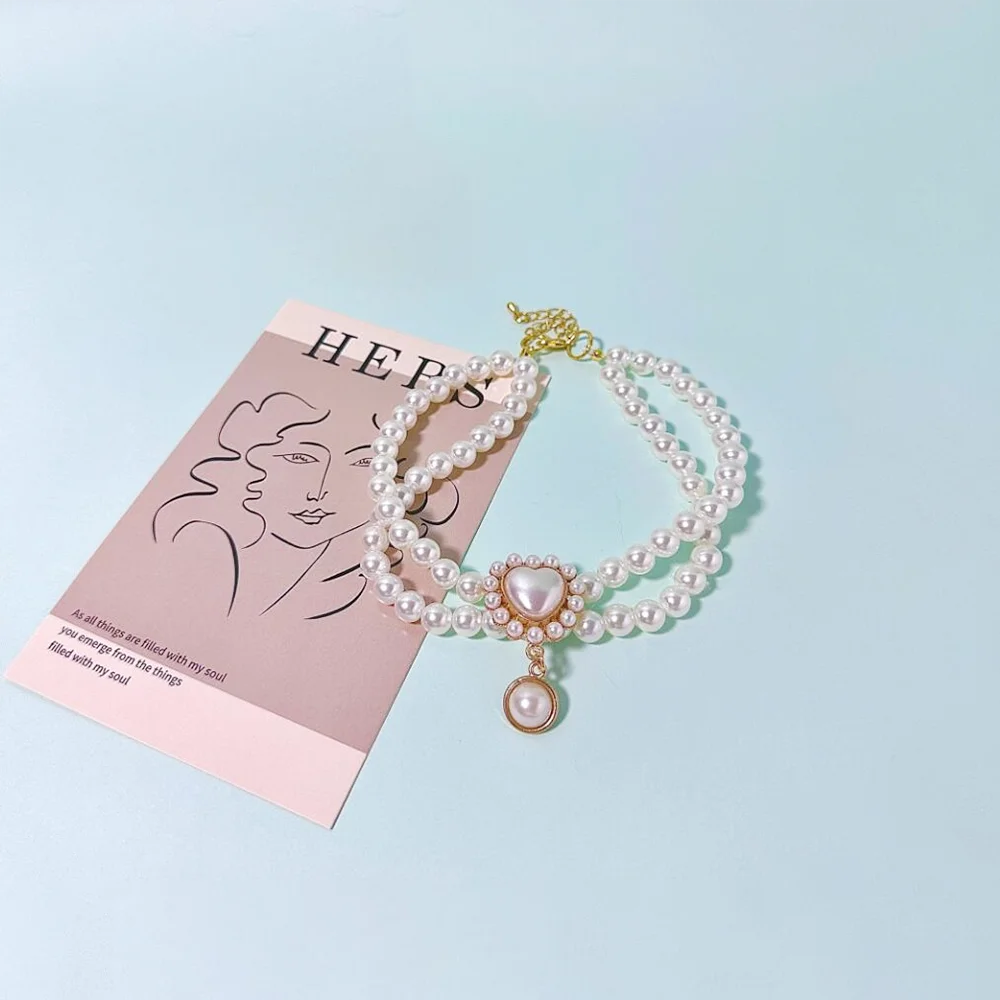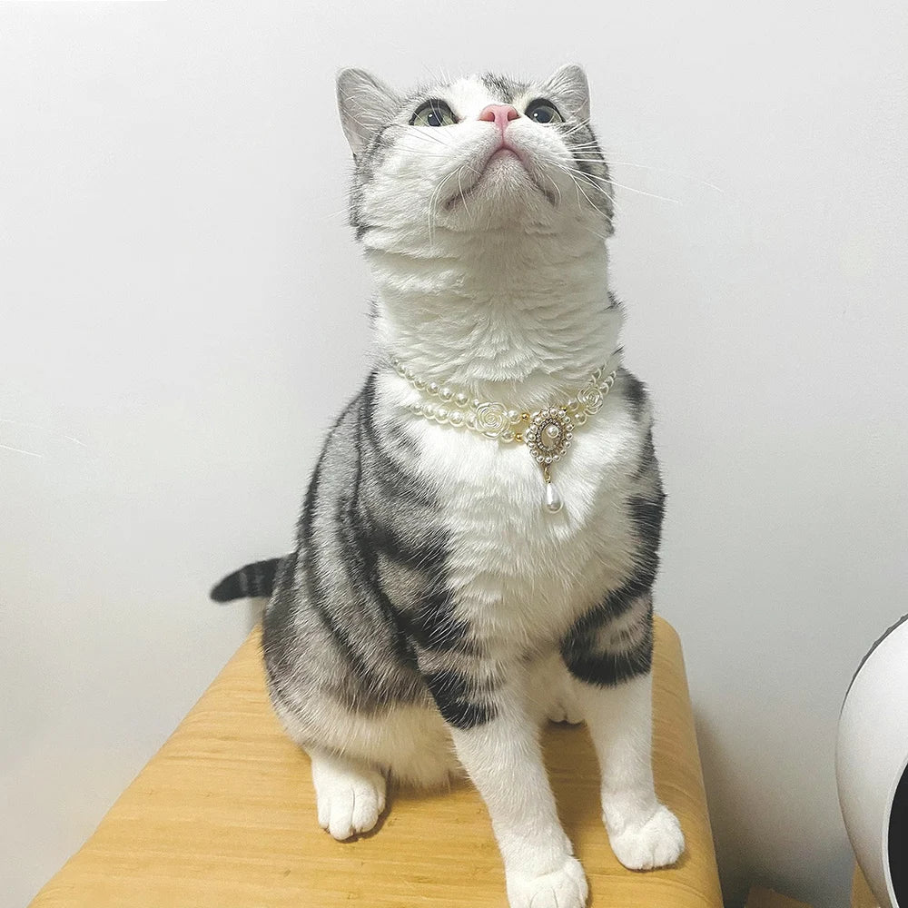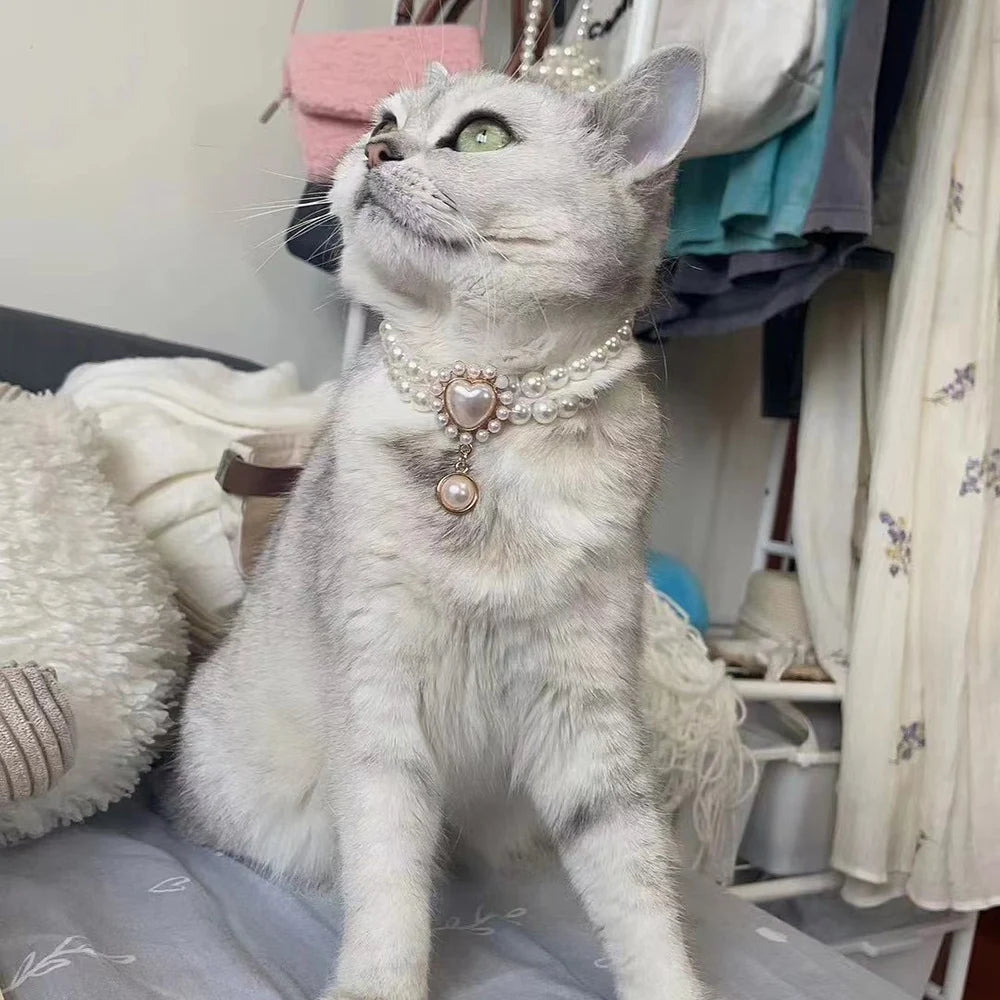 Adjustable Dog Cat Pearl Necklace Jewelry with Diamond Pendant Fashion Luxury Pet Collar Wedding Birthday Prom Costume Accessories