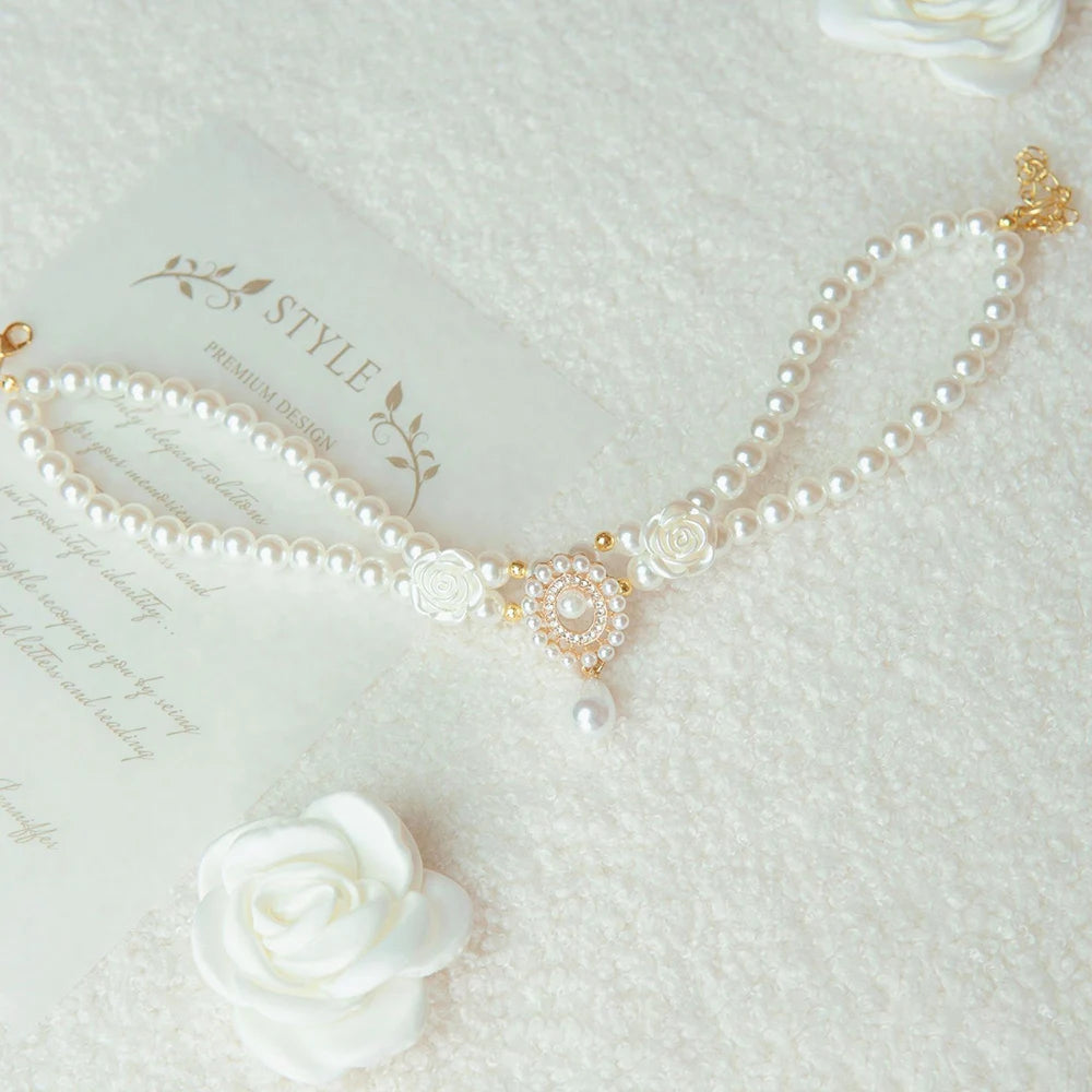 Adjustable Dog Cat Pearl Necklace Jewelry Diamond Pendant Fashion Luxury Pet Collar Wedding Birthday Prom Costume Accessories