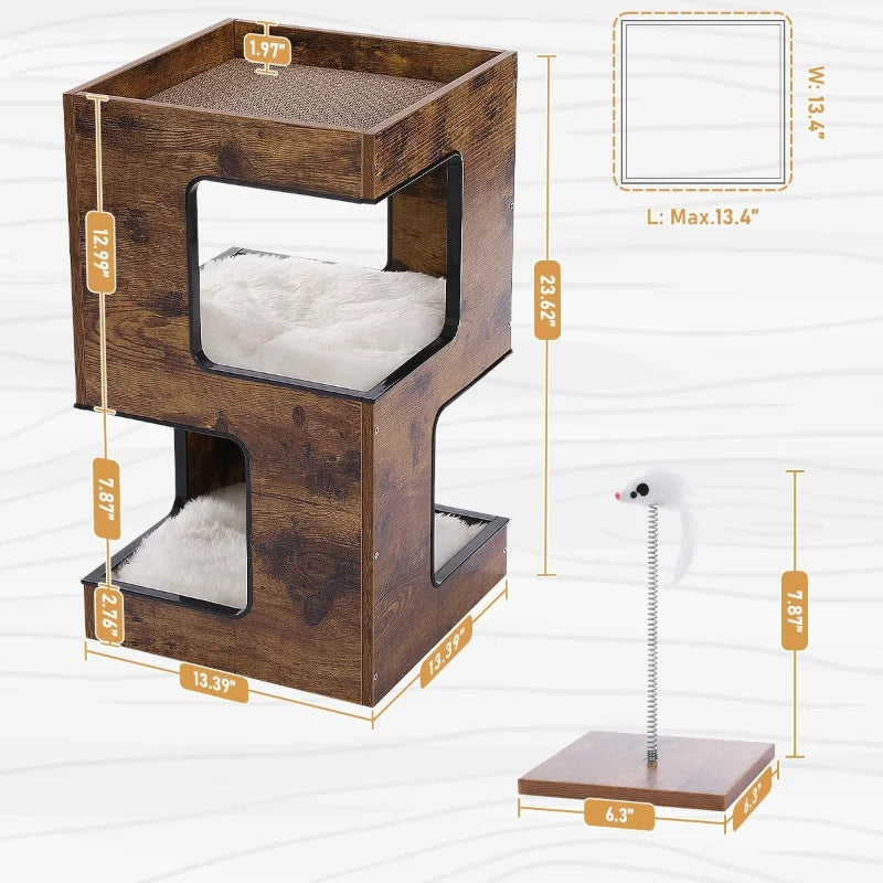 Cat Condo Small Modern Cat Tree for Indoor Cats, 23.6" Wood Cat Furniture, Cat Tower with Free Cat Toy, Scratching Pad and Remov