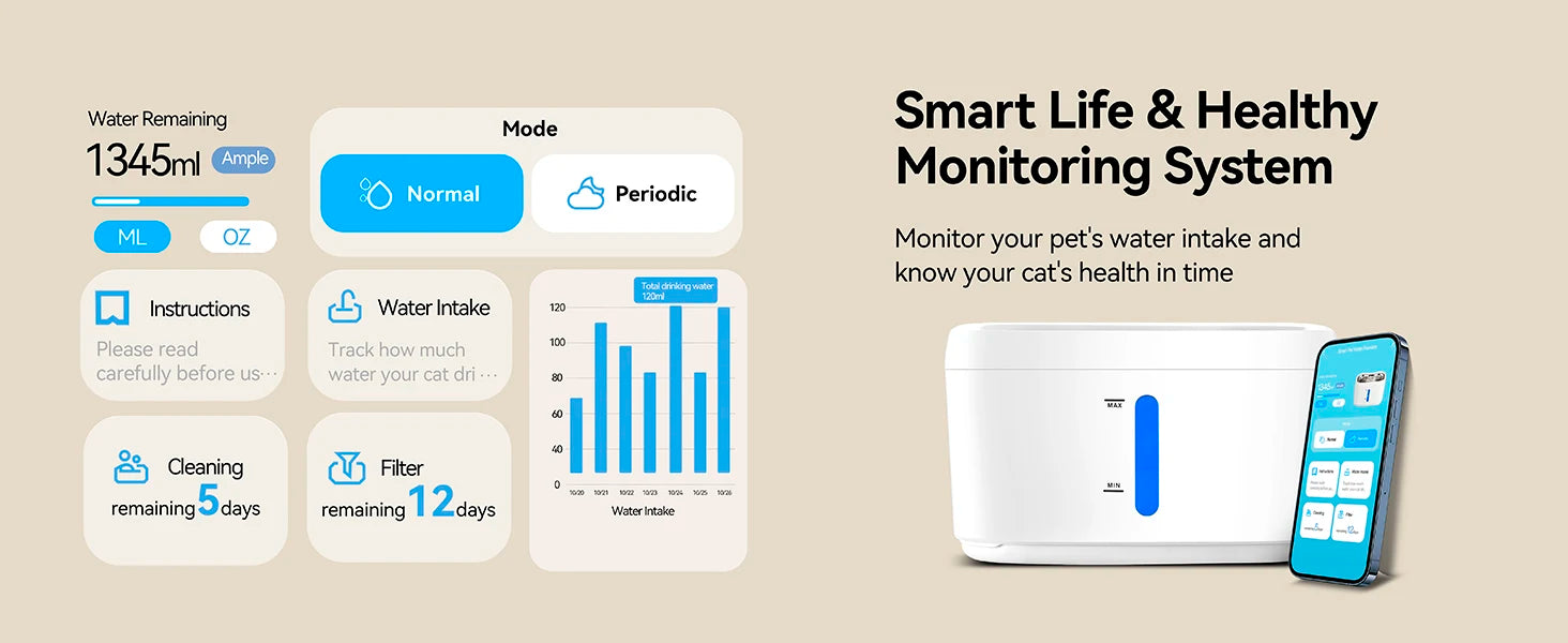 ππππ₯ππ‘ ππ¨π§π’ππ¨π«π’π§π : Utilize the Smart Life health monitoring system to track your cat's drinking habits, helping you gain valuable insights into their health and enabling early detection of potential issues.