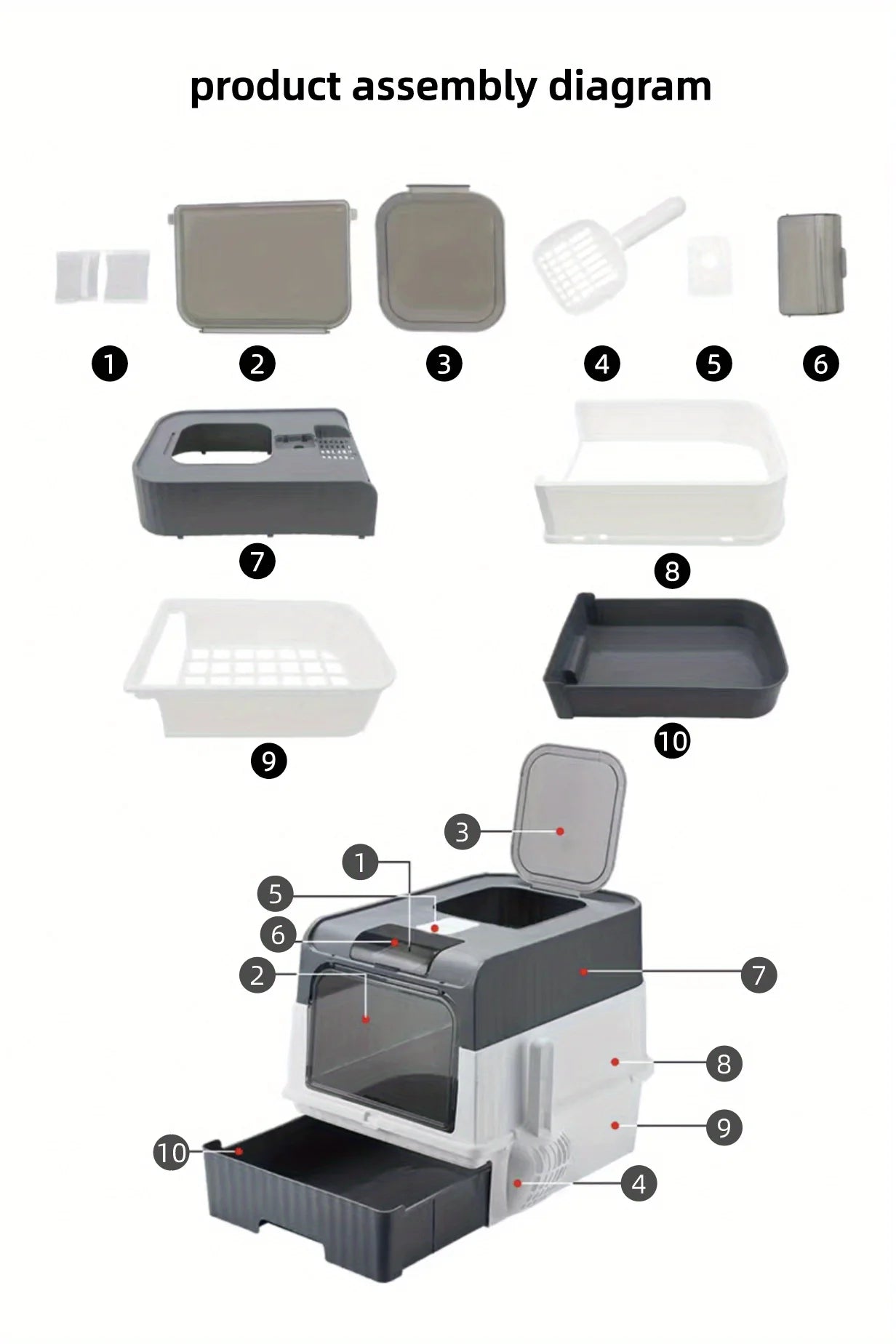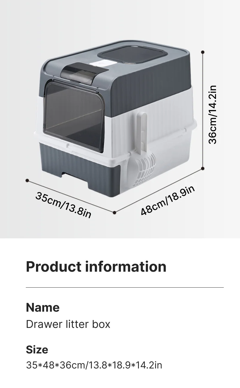 Easy To Clean Portable Fully Enclosed Drawer Top in Cat Litter Box with Splash Cover and Spoon, Cat Toilet Pet Supplies