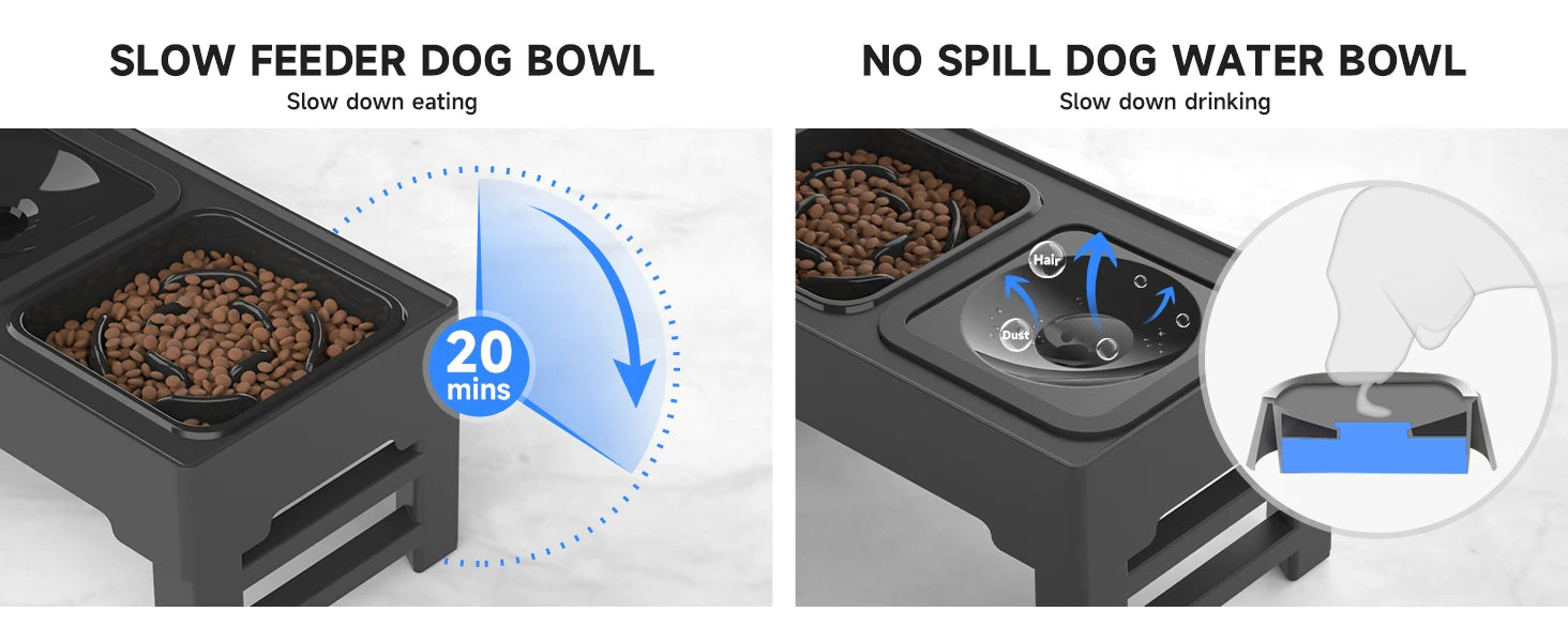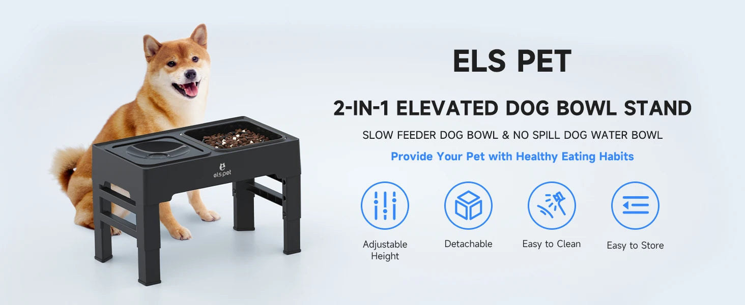 ELS PET Elevated Dog Bowls Adjustable Raised Dog Bowl with Slow Feeder Dog Bowl and Dog Water Bowl Non-Spill for Dogs and Pets