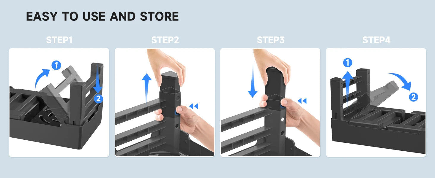 Easy to Install & Removable: The 4 heights elevated dog food and water bowls station is easy to assemble without any tools, and also simply too removed and folded for clutter-free space storage when not used. In addition, the foldable legs make it easy to store and carry.