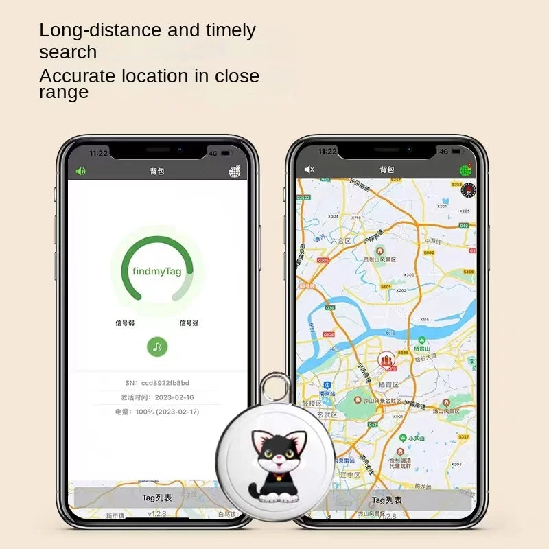3. The global positioning of this product is not limited to distance and does not require traffic, but it cannot be positioned in real time. For unlimited distance positioning, the signal of an Apple mobile phone within 30 meters of the surrounding area needs to be updated within 5-10 minutes to find the location of the navigation pet.