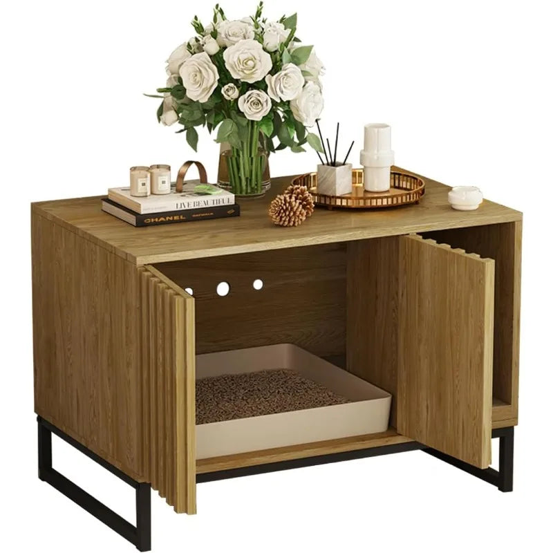 - Versatile Cat Litter Box with Countertop:Our multi-functional cat enclosure litter box is designed with a spacious countertop, perfect for show casing potted plants, magazines, lamps, or your favorite collectibles. It's a versatile addition that can function as a pet house, end table, storage cabinet, or entryway bench, it's also the ideal spot for small pets to rest and play.