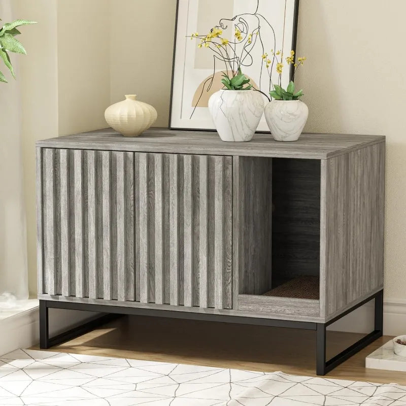 Fienveorn Litter Box Enclosure,Modern Cat Litter Box Enclosure Furniture Hidden Litter Box with Cat Scratch Pad, Cat Washroom