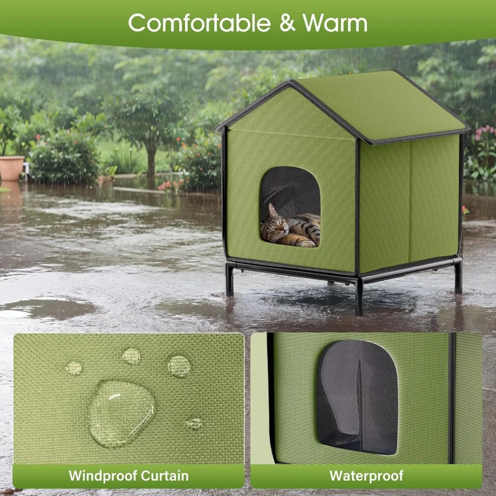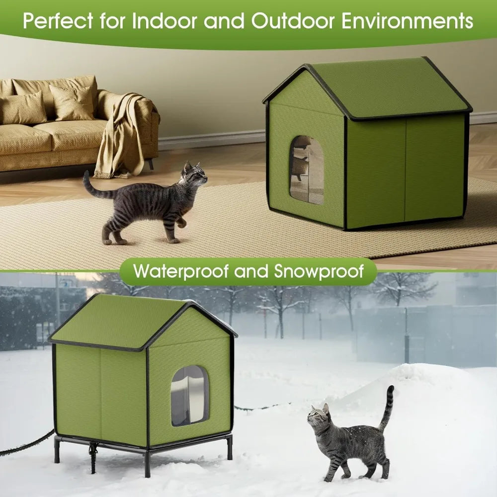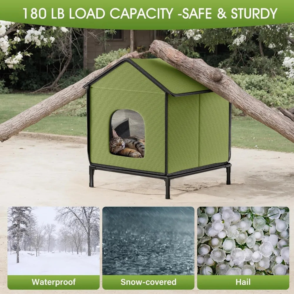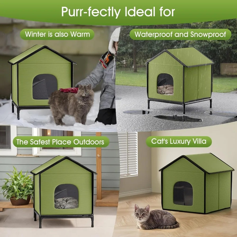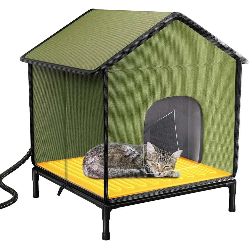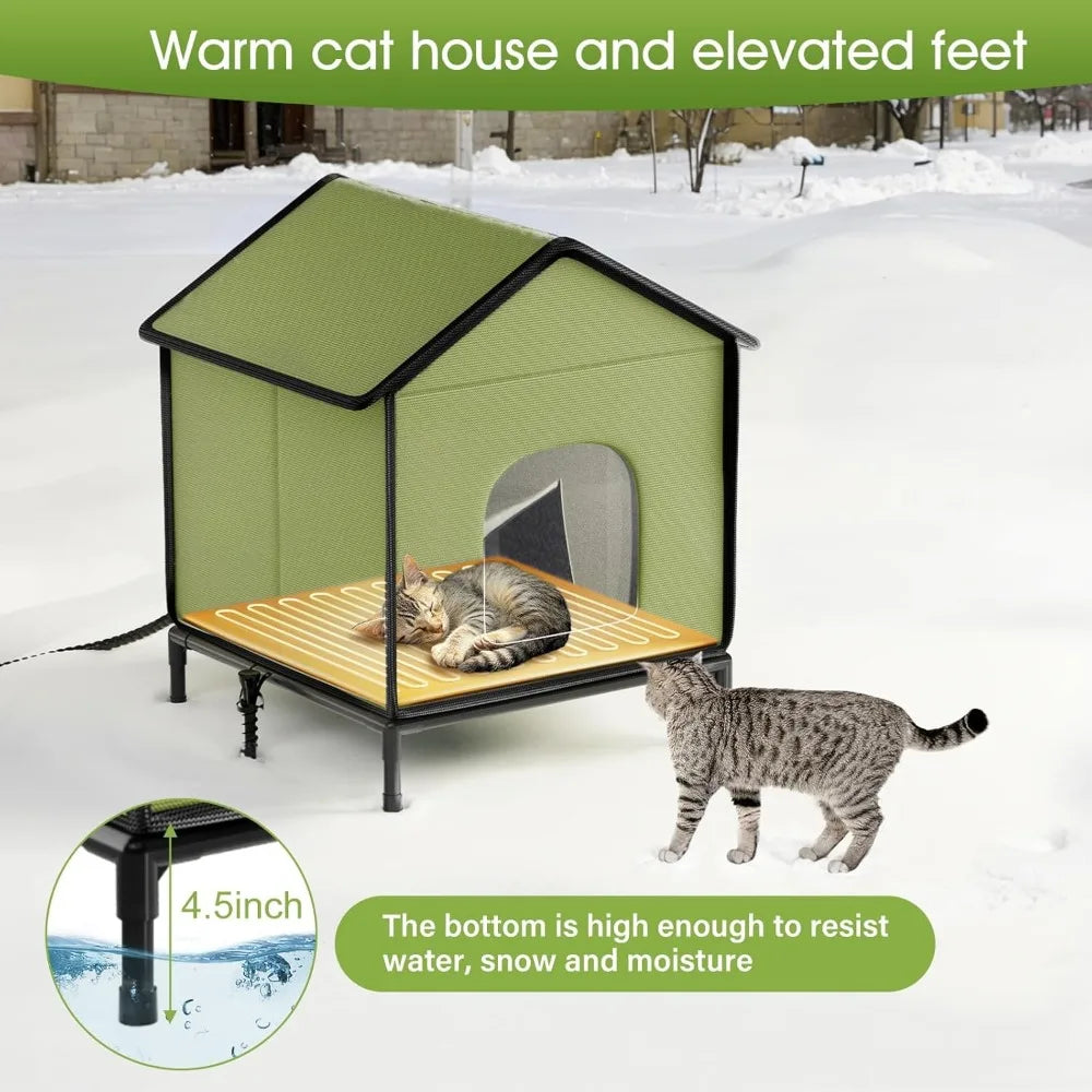 - 【Heating Pad & Elevated Dry Base】 - The included UL-tested waterproof heating pad keeps cats warm and protected, while the raised base guarantees they stay dry, even on wet or muddy surfaces