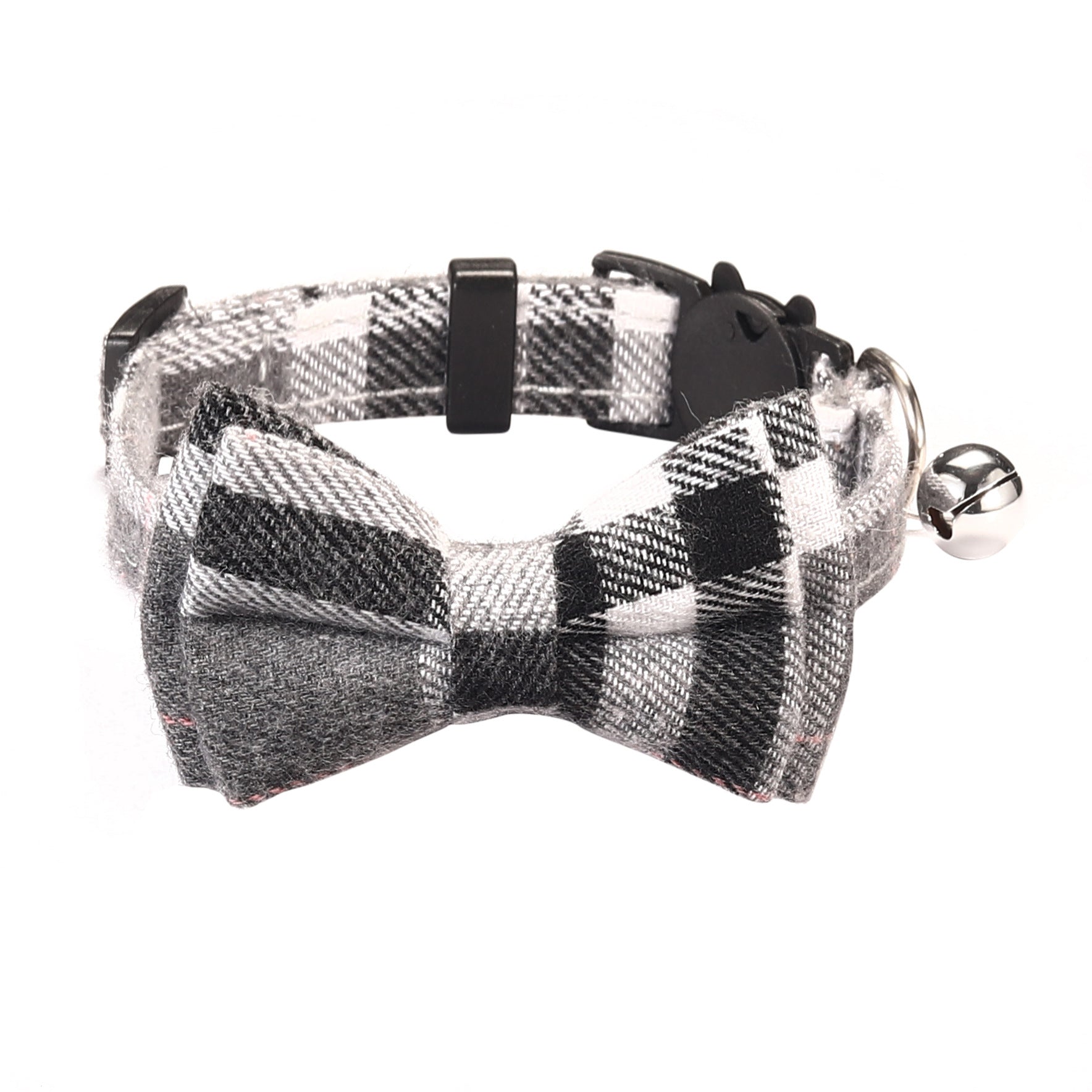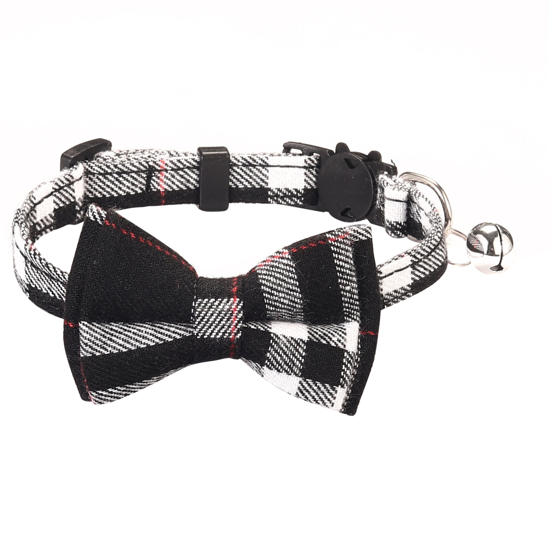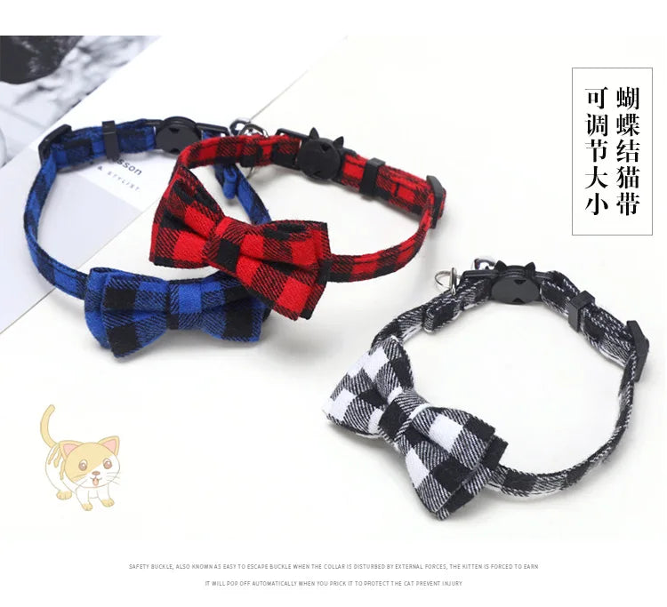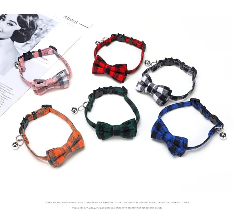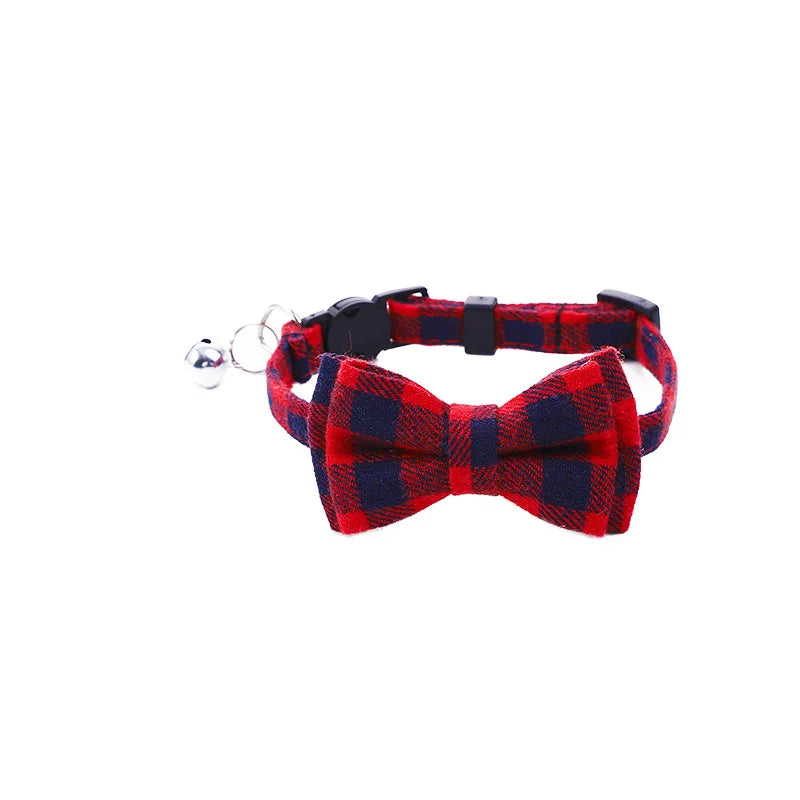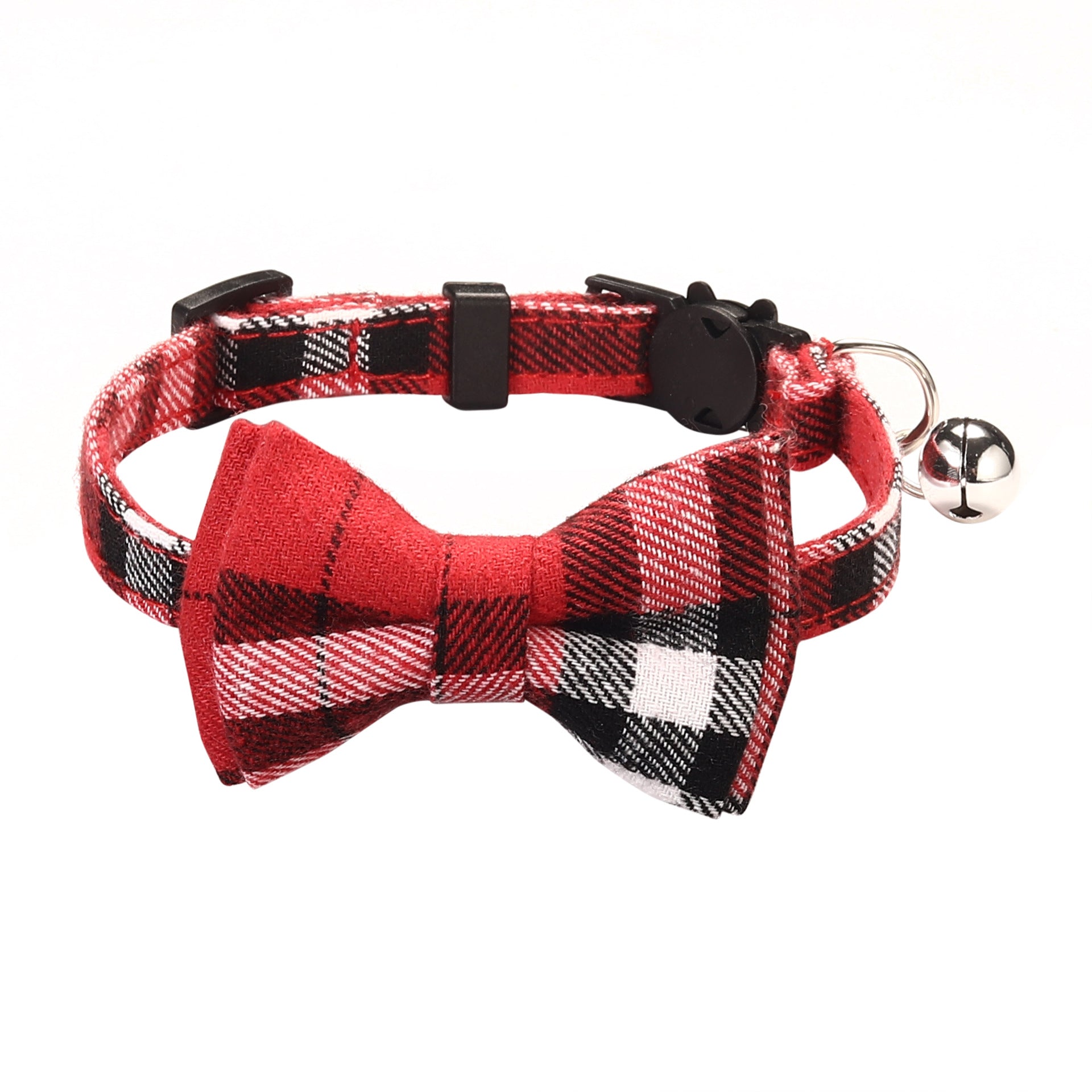 Pet Breakaway Kitten Cat Collar Bow Tie with Bell Cute Plaid Christmas Red Adjustable Dog Collar for Cats Kitten Accessories
