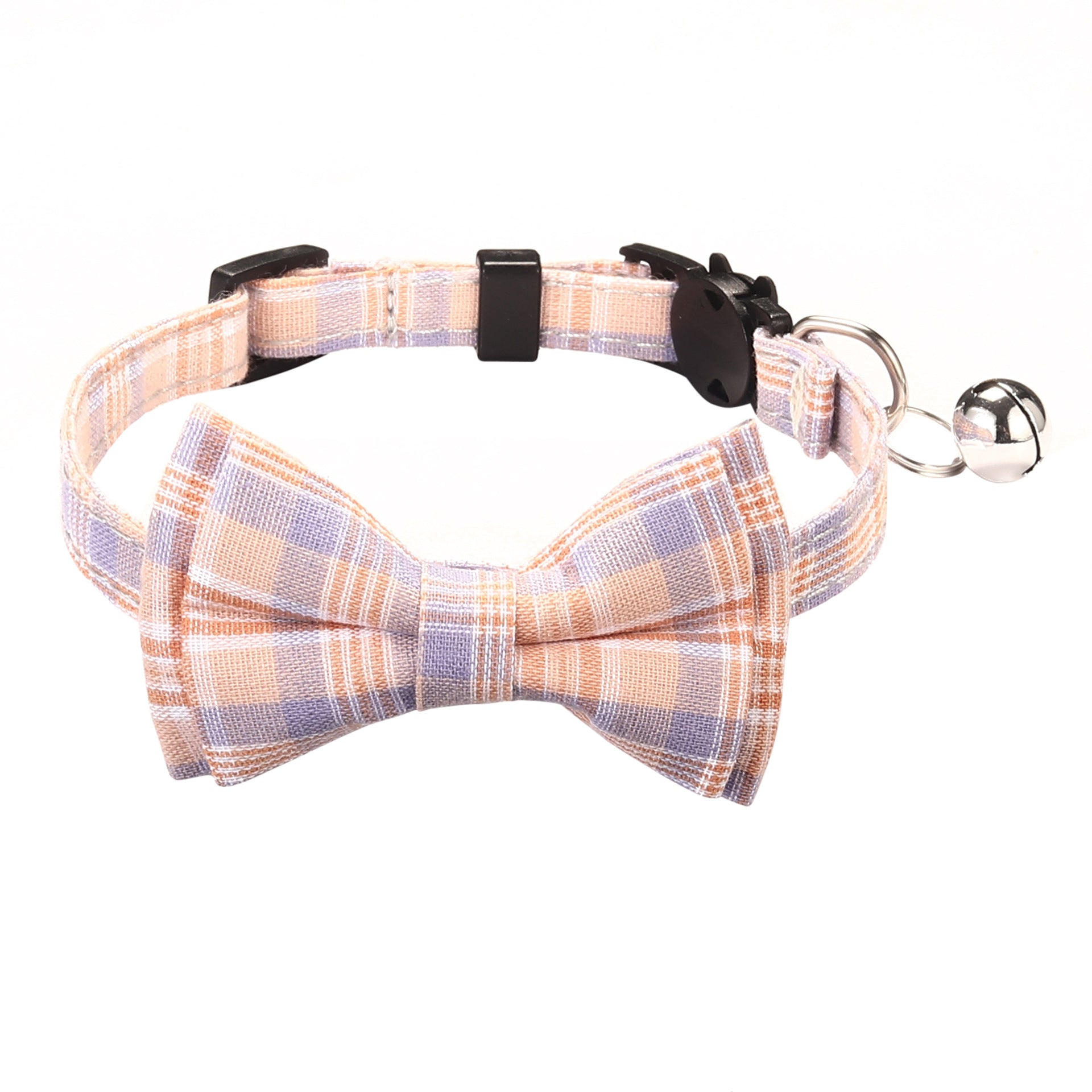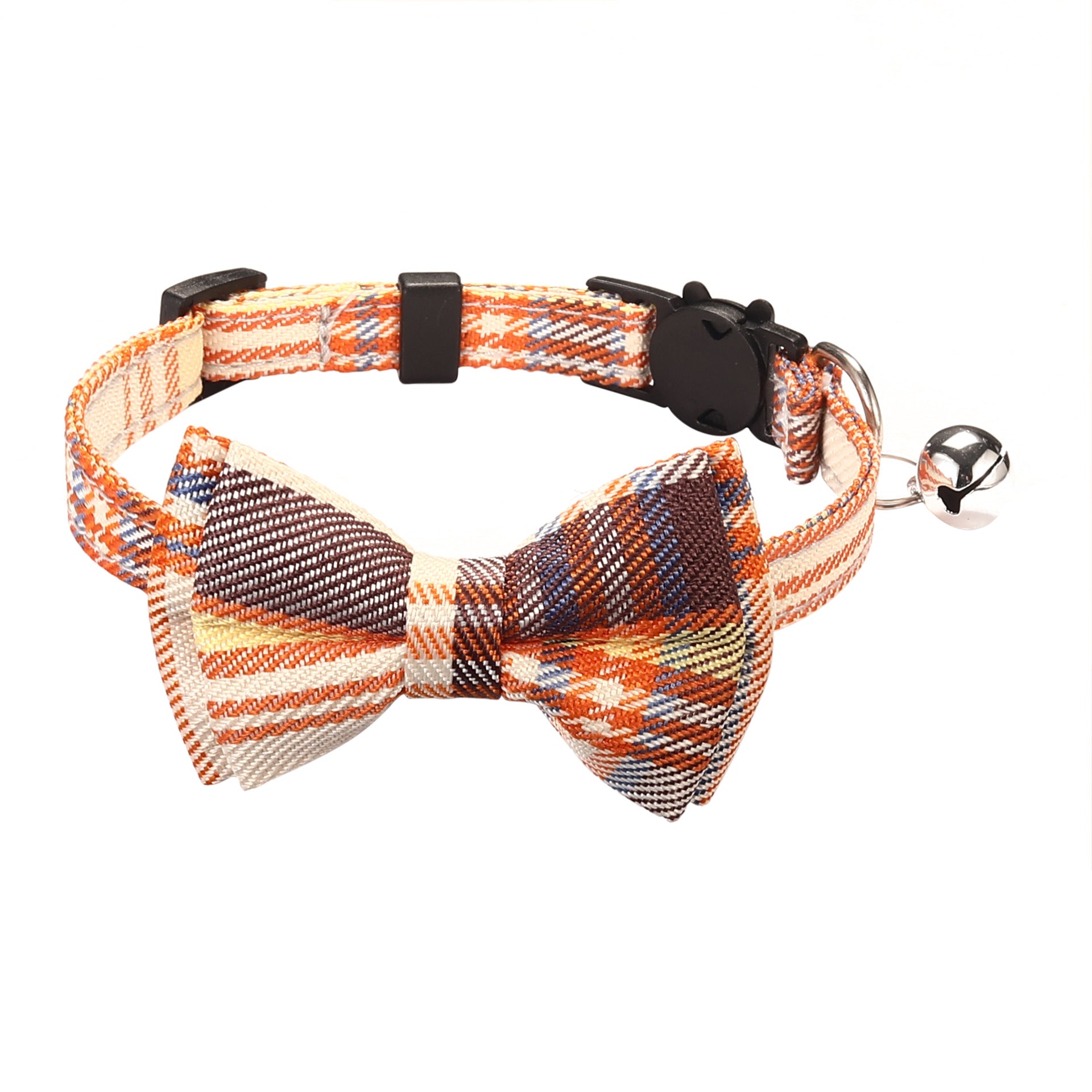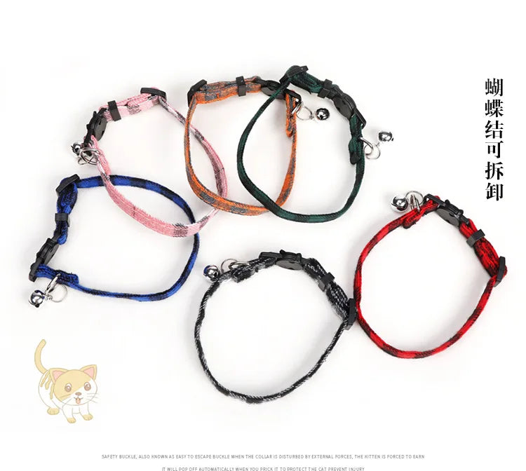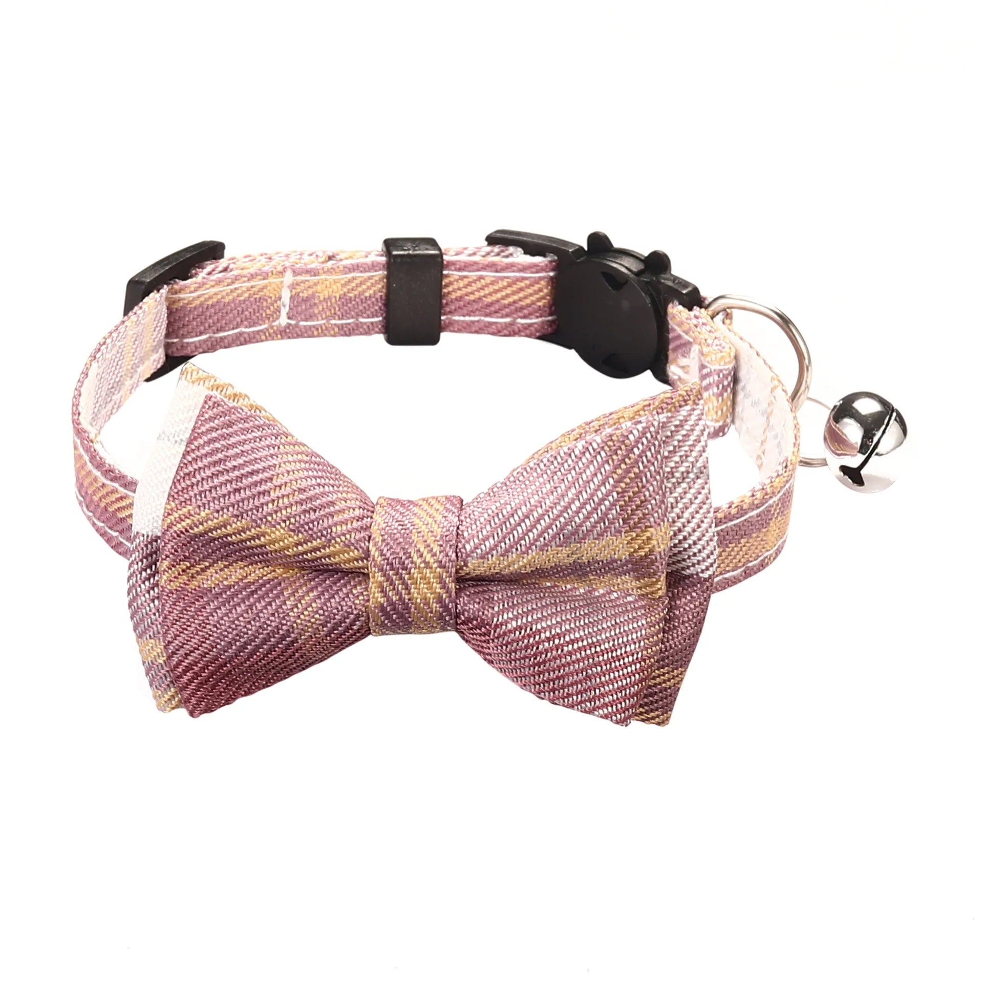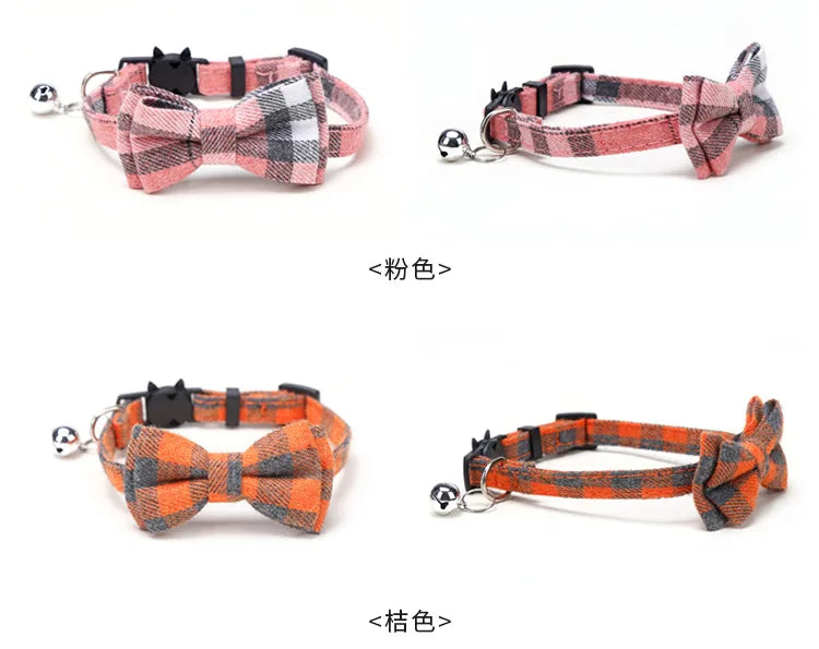 Pet Breakaway Kitten Cat Collar Bow Tie with Bell Cute Plaid Christmas Red Adjustable Dog Collar for Cats Kitten Accessories