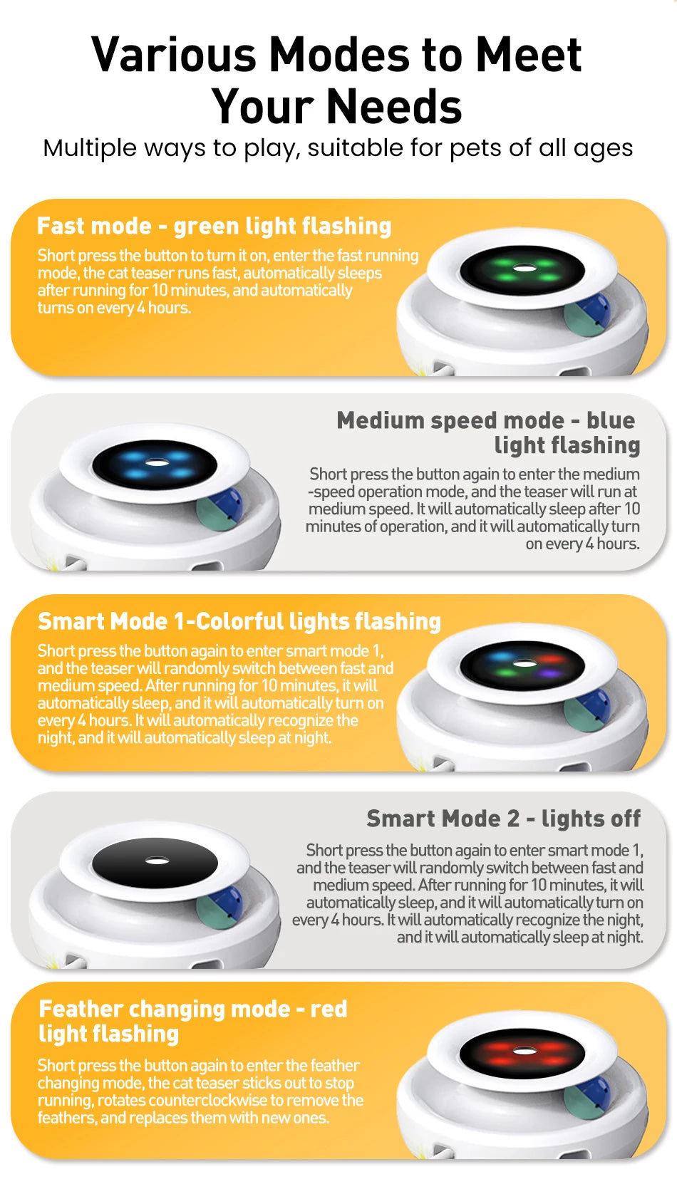 ROJECO 2 in 1 Smart Cat Toys Automatic Feather Fun Ball Toy Set For Cat Dog 5 Modes Electronic Interactive Pet Toy Accessories