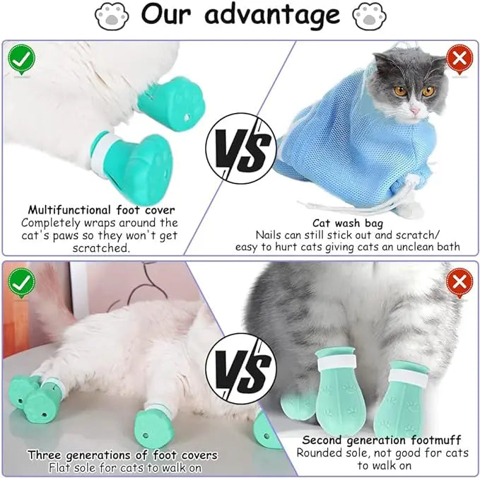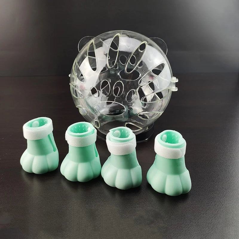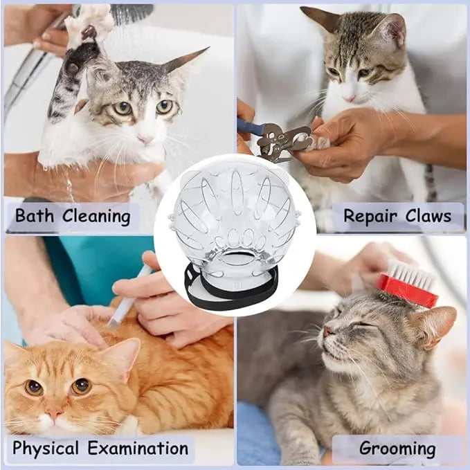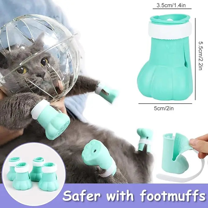 TONG Cat Muzzle with 4Pcs Paw Cover Grooming Anti Bite Breathable Protective Space Hood Cats Helmet Mask Adjustable Strap