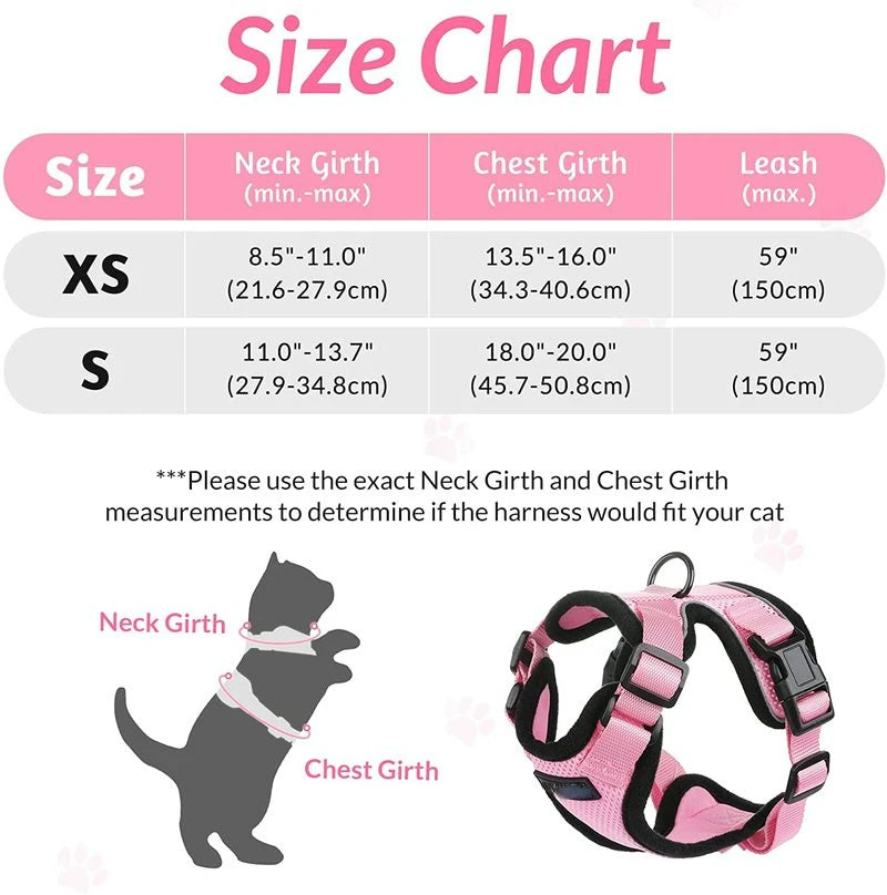 * If your cat is between sizes, please go for the smaller size. This harness is not meant for newborn babies or small kittens.